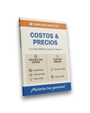 Transforma tu pasión en un negocio lucrativo! Este bono esencial te enseñará a calcular costos de ingredientes, mano de obra y gastos fijos, además de presentarte una fórmula clara para fijar tus precios en USD.
